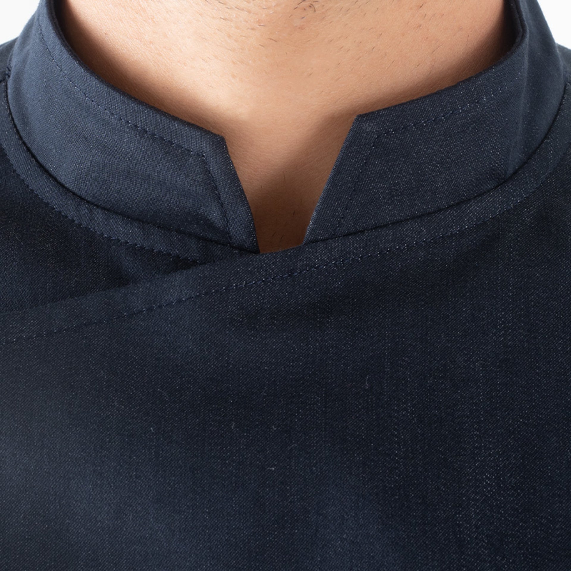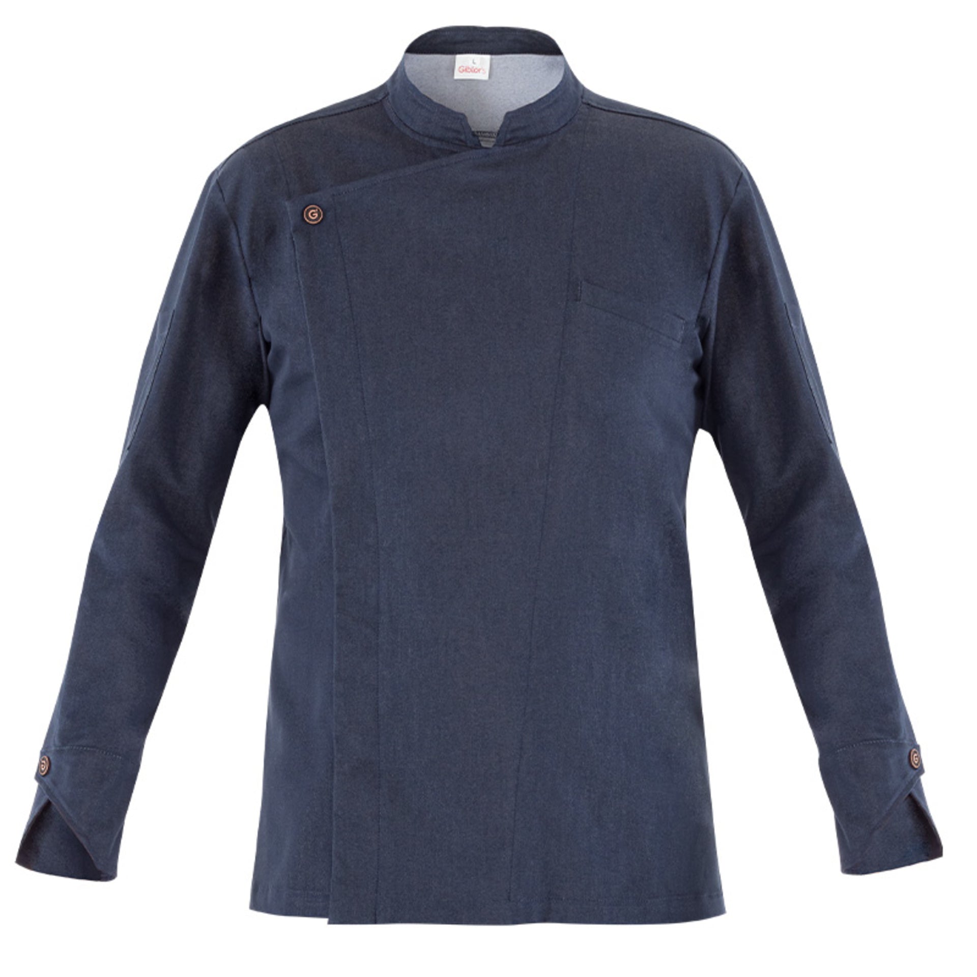 Die Kochjacke Eric ist in der Farbe Jeans Denim-Blau Die Baumwollqualität steht für allerfeinstes Material und Tragekomfort.