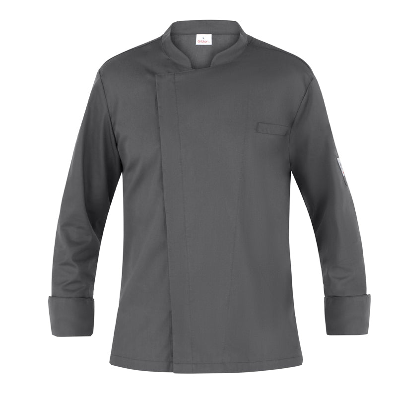 Die Kochjacke Francesco ist in der Farbe Grau und hatt einen stretch Rückenteil. Dieser Rückenteil sorgt für ausreichend Luft in der heissen Küche. Die Baumwollqualität steht für allerfeinstes Material und Tragekomfort. Netztzeil unter den Armen und Rücken für besseres Klima und Belüftung.
